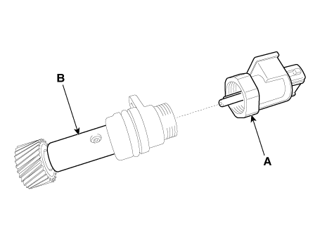 Разъедините датчик скорости автомобиля (А) и ведомую шестерню (В).