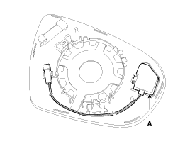Снимите зеркало (C) с держателя зеркала после отсоединения разъема обогревателя (A) и разъема предупреждения BSD (B).