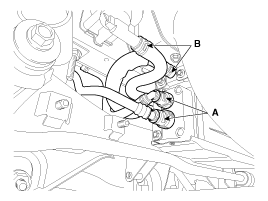 Отсоедините быстроразъемные соединения паровой трубки (А) и вентиляционные шланги (В).