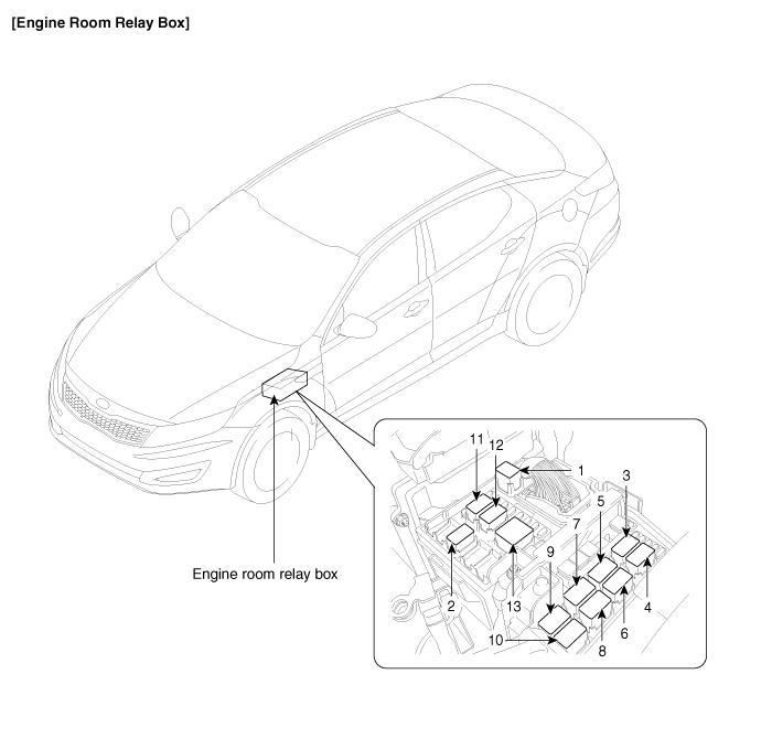 11. Реле топливного насоса 12. Реле звукового сигнала 13. Реле управления двигателем |