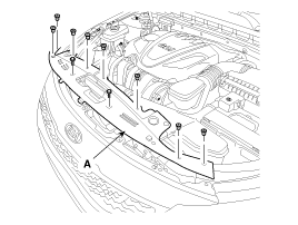 Ослабив крепежные болты и зажимы, снимите верхнюю крышку решетки радиатора (А).