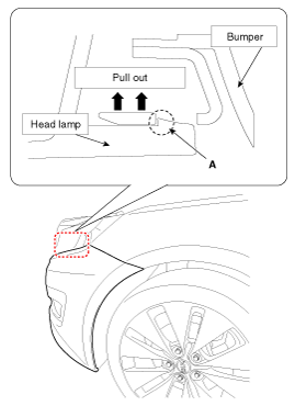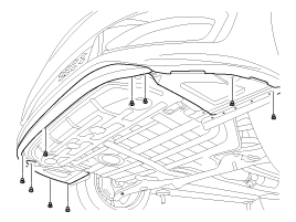 Снимите передний бампер, потянув за край переднего бампера вверх, а затем вытащив его.