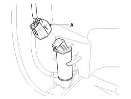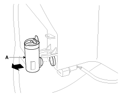 Снимите шланг омывателя и отсоедините разъем электродвигателя омывателя (А) и разъем датчика уровня (В).