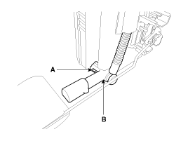 Снимите возвратную форсунку (B), отпустив фиксирующий крючок (A).