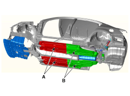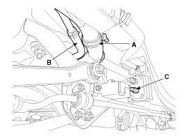 Снятие 1. Отсоедините отрицательную (-) клемму аккумуляторной батареи. 2. Снимите заднее сиденье. (См. группу BD - "Заднее сиденье") 3. Снимите накладку лотка для пакетов (A). (См. группу BD — «Внутренняя отделка») 4. Снимите звукоизоляционный войлок (А), чтобы снять проводку. 5. Снимите верхний стоп-сигнал после снятия ...