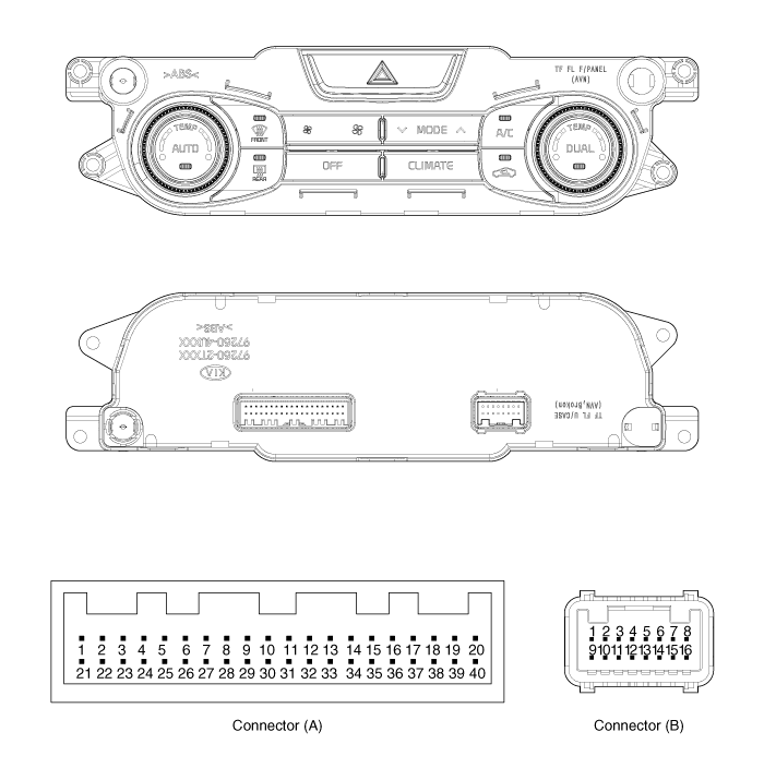 | Панель управления (двойной контроллер кондиционера и обогревателя — A) |