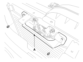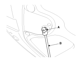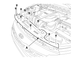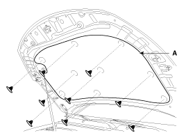 Используя съемник зажимов, отсоедините зажимы и снимите изоляционную прокладку капота (А).