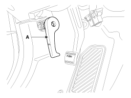 С помощью отвертки или съемника снимите ручку открывания капота (А).