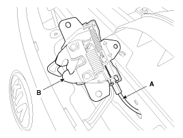 Отсоедините трос замка капота (А) и снимите замок капота (В).