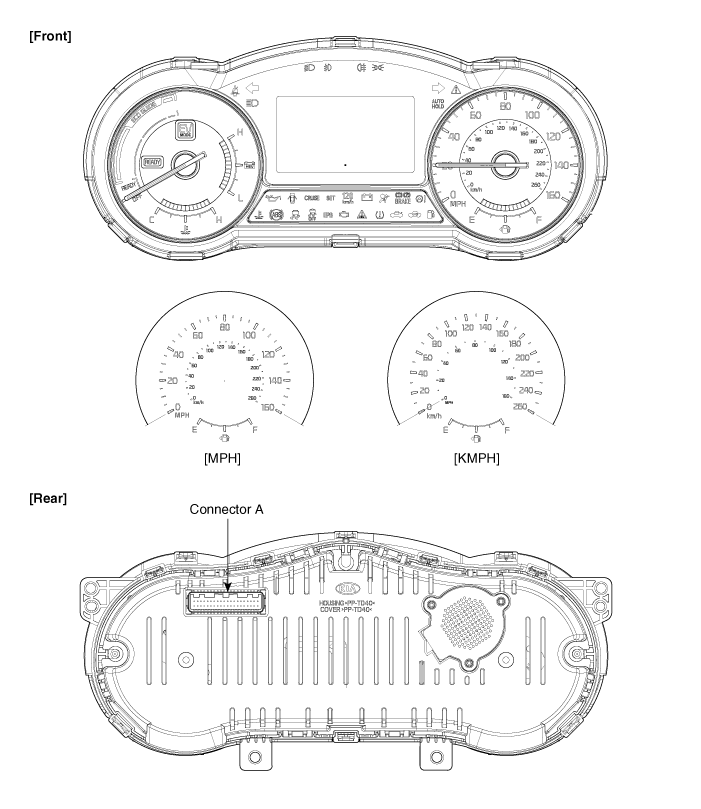 Расположение компонентов 1. Комбинация приборов в сборе2. Выключатель ремня безопасности3. Датчик скорости автомобиля4. Датчик температуры охлаждающей жидкости двигателя5. Датчик давления масла6. Сигнализатор уровня тормозной жидкости7. Ручной тормоз ...