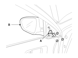 Ослабив крепежные гайки, снимите наружное зеркало заднего вида (В).