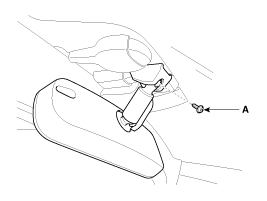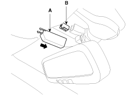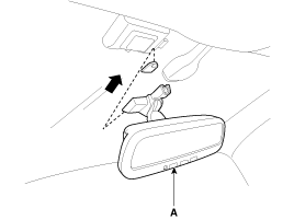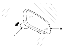 Нажмите на основание внутреннего зеркала заднего вида (А) вниз, чтобы снять внутреннее зеркало заднего вида в сборе (В).