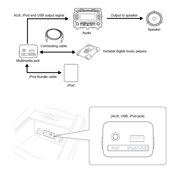 Снятие 1. Снимите ручку рычага переключения передач. (См. группу BD - "Консоль") 2. Снимите верхнюю крышку консоли (А). 3. Отсоедините разъем от верхней крышки консоли. 4. Снимаем мультимедийный разъем...