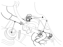 Отсоедините вентиляционные шланги (B,C).