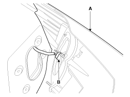 Снимите задний комбинированный фонарь (А), отсоединив разъем (В).