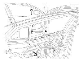 С помощью отвертки или съемника снимите молдинг рамы задней двери (А).