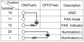 Проверьте целостность цепи между клеммами при нажатии переключателя PAS.
