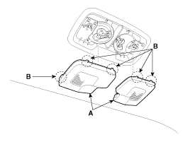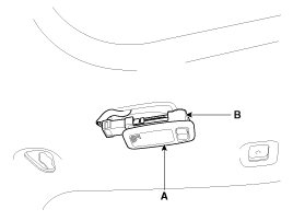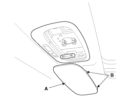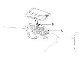 Снимите комнатный светильник в сборе (А) после отсоединения разъема (В).