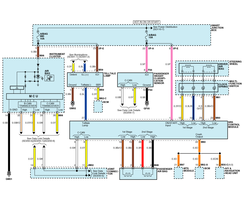 Снятие 1. Отсоедините отрицательный кабель аккумуляторной батареи и подождите не менее трех минут перед началом работы. 2. Снимите сиденье переднего пассажира в сборе. (См. Группу Кузов - "Сиденье") 3. Снимите ...