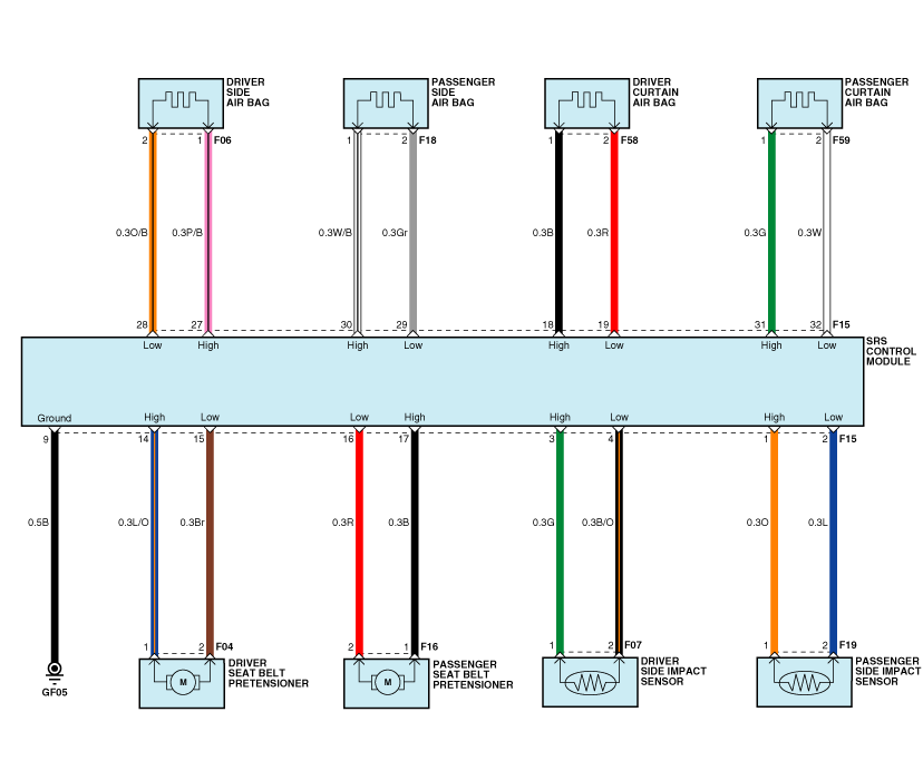 Датчик бокового удара со стороны пассажира (высокий уровень)