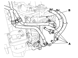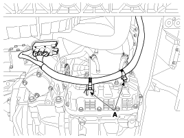 Снимите трубку масляного радиатора автоматической коробки передач (А).