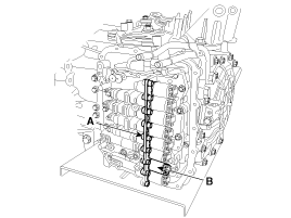 Снимите электромагнитный клапан (B) после снятия опоры электромагнитного клапана (A).