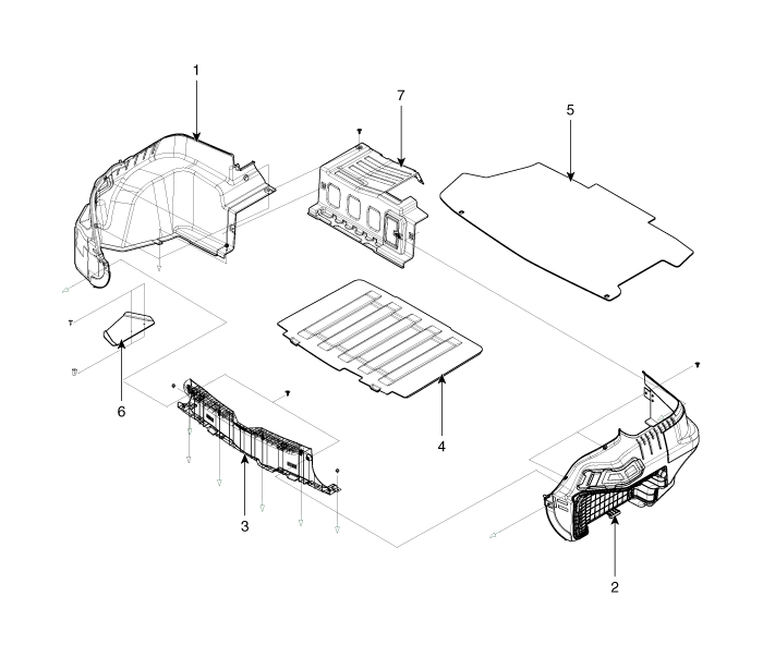 6. Боковая панель багажного отделения 7. Обшивка корпуса аккумулятора |