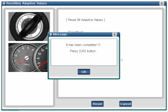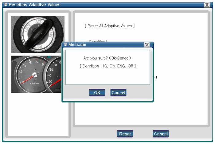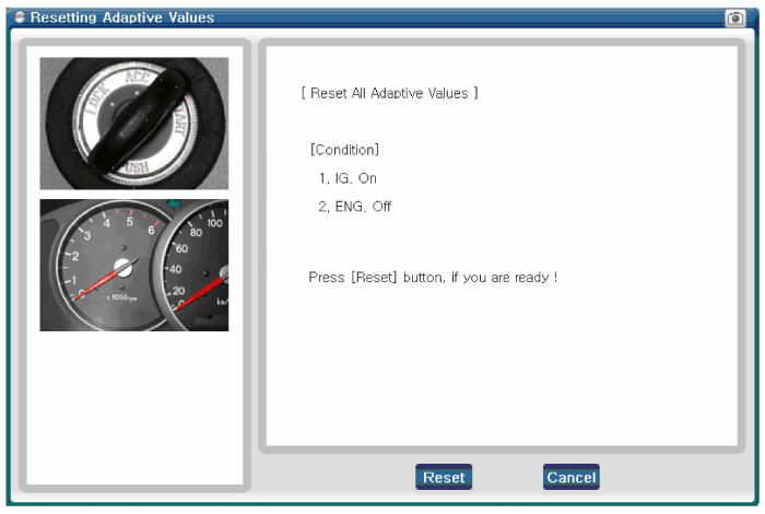 Выберите «Сброс», затем подождите 10 секунд после поворота ключа зажигания.