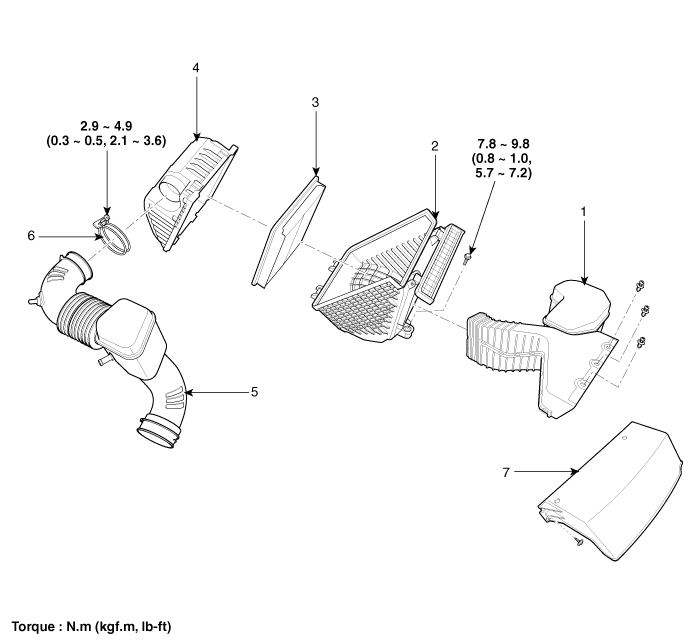Kia Sorento: Air Cleaner Components - Intake And Exhaust System - Engine Mechanical System - Kia Sorento XM 2011-2023 Service Manual Kia Sorento: Компоненты воздухоочистителя