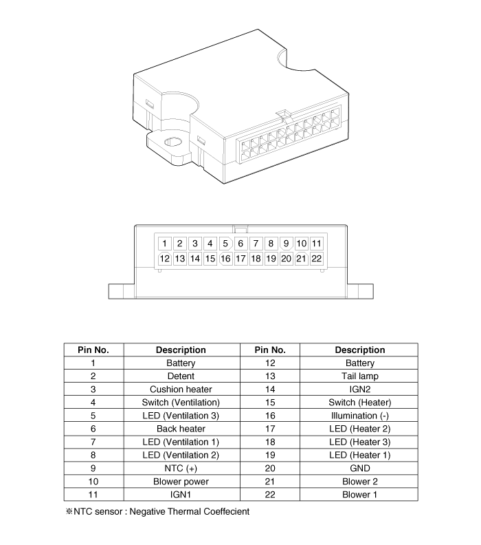 Kia Sorento: Расположение компонентов блока управления вентиляцией сиденья