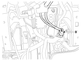 Отсоедините 6-контактный разъем (B) рамочной антенны, а затем снимите