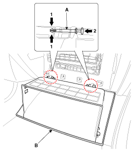 Отсоедините штифты (А) и снимите перчаточный ящик (В).
