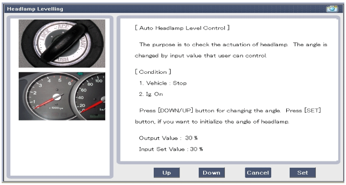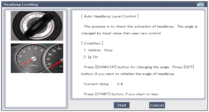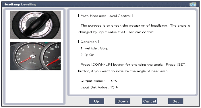 Kia Sorento: проверка автокорректора фар с помощью GDS