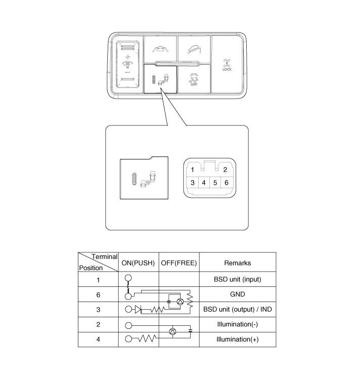 Kia Sorento: схема выключателя системы обнаружения слепых зон