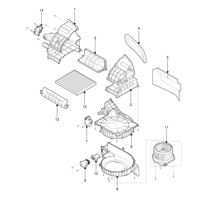 Kia Sorento: Компоненты блока отопителя