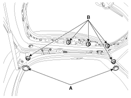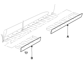 С помощью отвертки или съемника снимите задний молдинг крыши (А). и передний молдинг крыши (B).