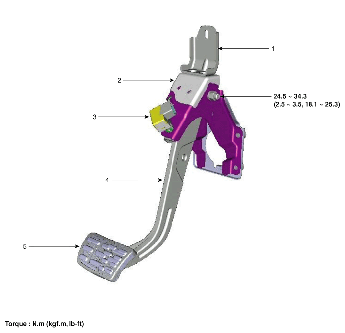 XM второго поколения (2011-2023 гг.) / Kia Sorento XM 2011-2023 Руководство по ремонту / Тормозная система / Тормозная система / Компоненты педали тормоза