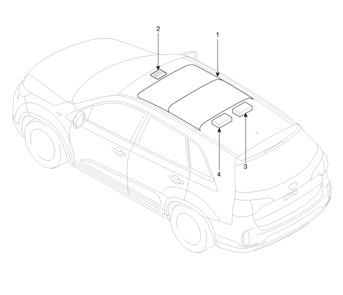 XM второго поколения (2011-2023 гг.) / Kia Sorento XM 2011-2023 Руководство по ремонту / Электрическая система кузова / Панорамный люк / Расположение компонентов