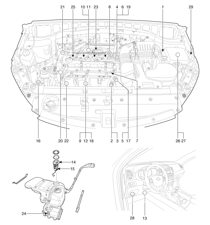 Kia Sorento: Components Location - Engine Control System - Engine Control / Fuel System - Kia Sorento XM 2011-2023 Service Manual Kia Sorento: расположение компонентов