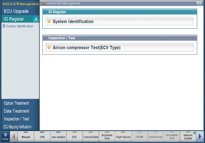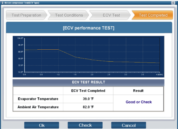 Подключите GDS к автомобилю и выберите «Тест компрессора кондиционера (ECV)».