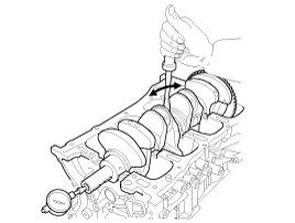 Используя циферблатный индикатор, измерьте осевой зазор, поддевая