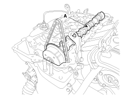 Снимите болт сервисного отверстия (А) крышки цепи привода ГРМ.
