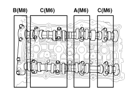 Установите крышки (А) подшипников распределительных валов на свои места.