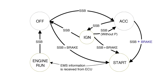 Отличительной чертой системы на основе механического выключателя зажигания является что система BES допускает специальный переход от [OFF] к [START] без проходит через состояния [ACC] и [IGN].