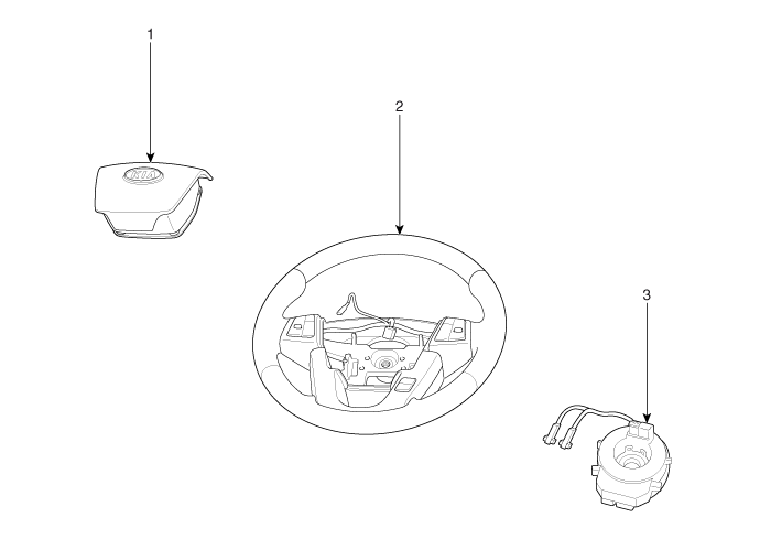 Kia Sorento: Driver Airbag (DAB) Module and Clock Spring Components - Airbag Module - Restraint - Kia Sorento XM 2011-2023 Service Manual Kia Sorento: модуль подушки безопасности водителя (DAB) и компоненты часовой пружины