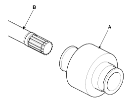 Осторожно отделите динамический демпфер (A) от вала (B).