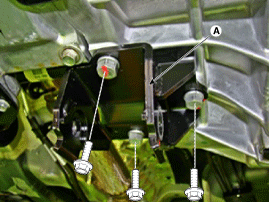 Снимите монтажный кронштейн коробки передач с помощью болта (А).