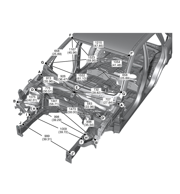 Kia Sorento: Front Body A - Body Dimensions - Body (Interior and Exterior) - Kia Sorento XM 2011-2023 Service Manual Киа Соренто: передний кузов А