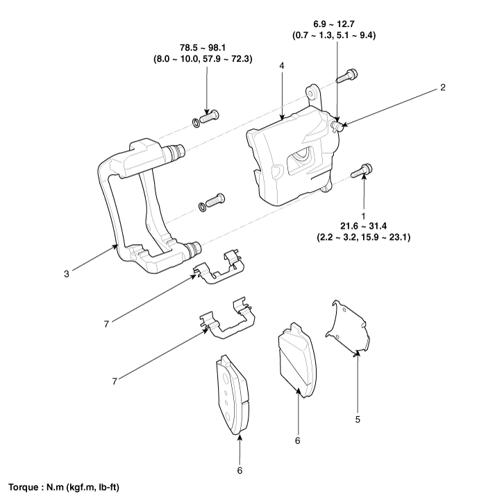 XM второго поколения (2011-2023 гг.) / Kia Sorento XM 2011-2023 Руководство по ремонту / Тормозная система / Тормозная система / Компоненты переднего дискового тормоза