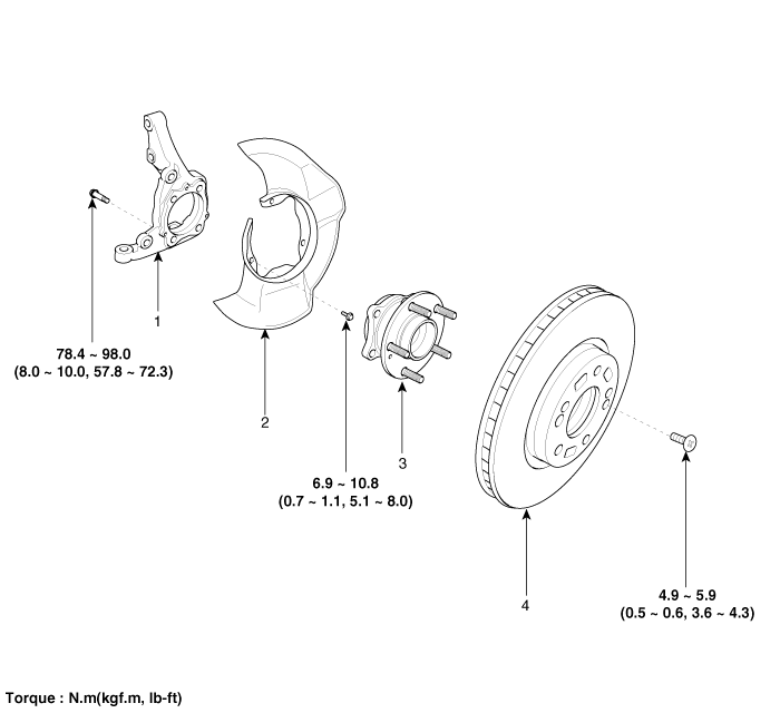 Kia Sorento: Компоненты передней втулки / поворотного кулака / тонального колеса